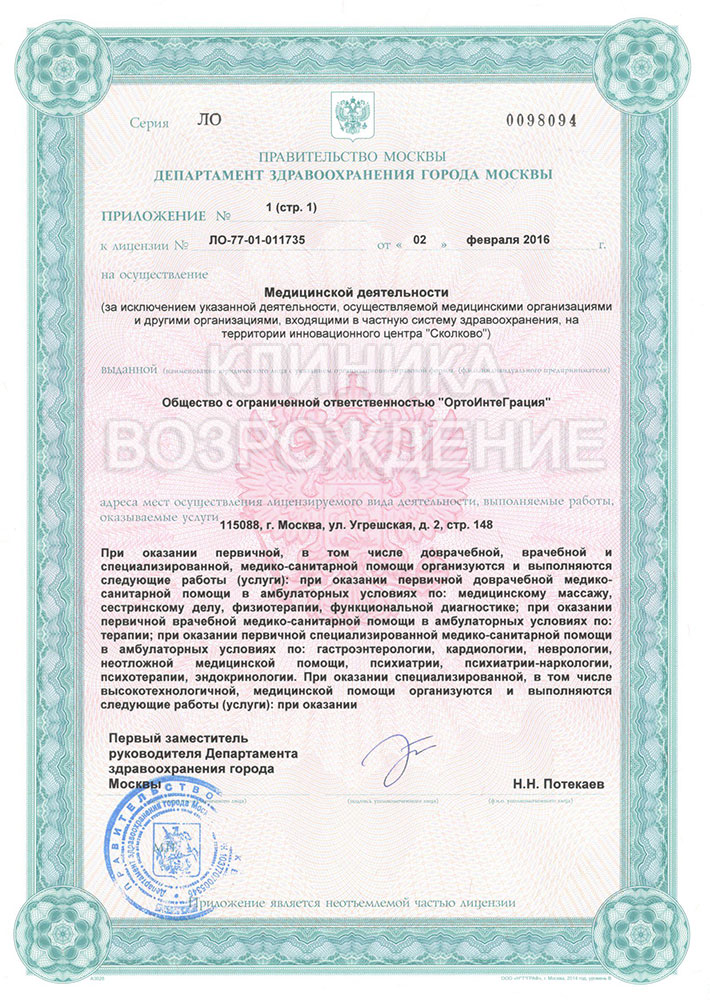 Врачи со средним стажем работы более 15 лет. Предоставление лицензий от клиник.